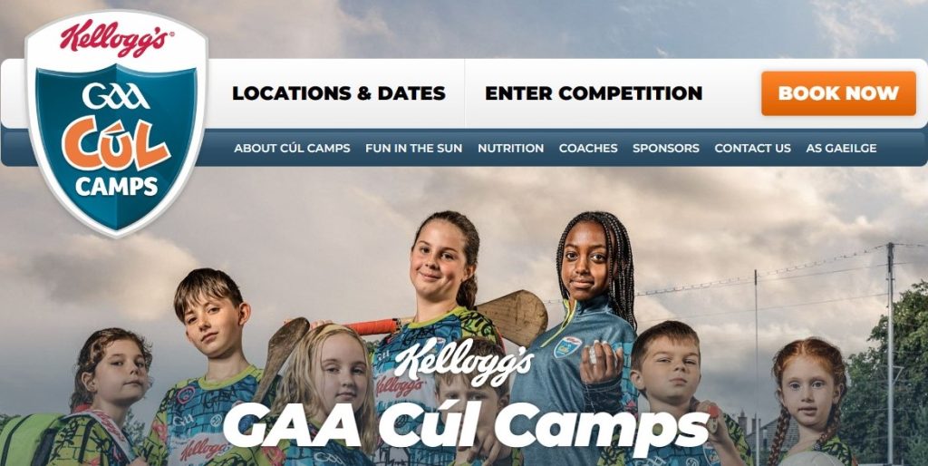Kellogg’s GAA Cúl Camps provide primary school boys and girls with an action-packed and fun-filled week of activity during the summer holidays which revolves around maximising enjoyment and sustaining participant involvement in Gaelic Games.